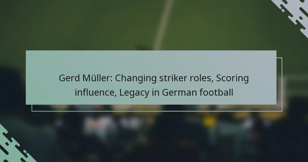 Gerd Müller is defined by his extraordinary goal-scoring ability and instinctive positioning, making him one of the most prolific strikers in football history. His role as a striker was characterized by a unique blend of technical skill, physical presence, and tactical awareness, allowing him to excel in various formations and adapt to the evolving demands of the game.