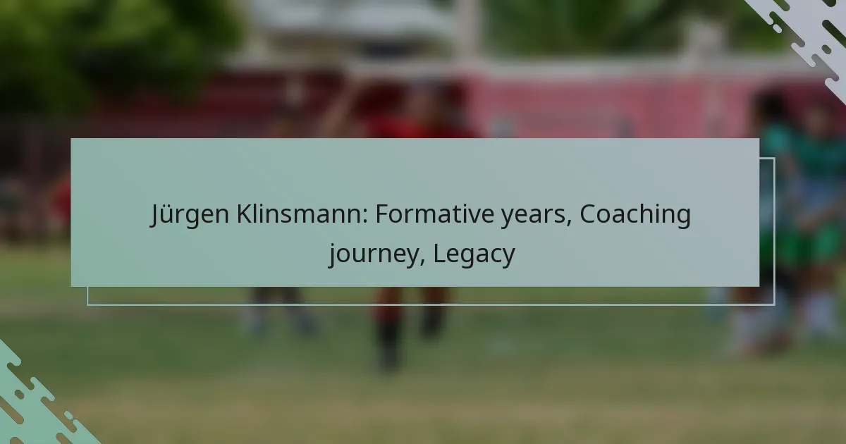 Jürgen Klinsmann’s legacy in football is marked by his innovative playing style, impactful coaching philosophy, and significant contributions to player development. His influence extends globally, shaping modern football tactics and mentoring future generations.